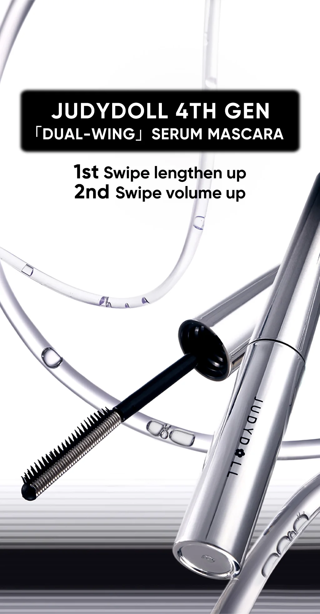 JUDYDOLL Dual-Wing Serum Mascara and Lash Primer, Waterproof, Lengthening, Curling, Sweatproof, Smudge-proof, Quick-Drying